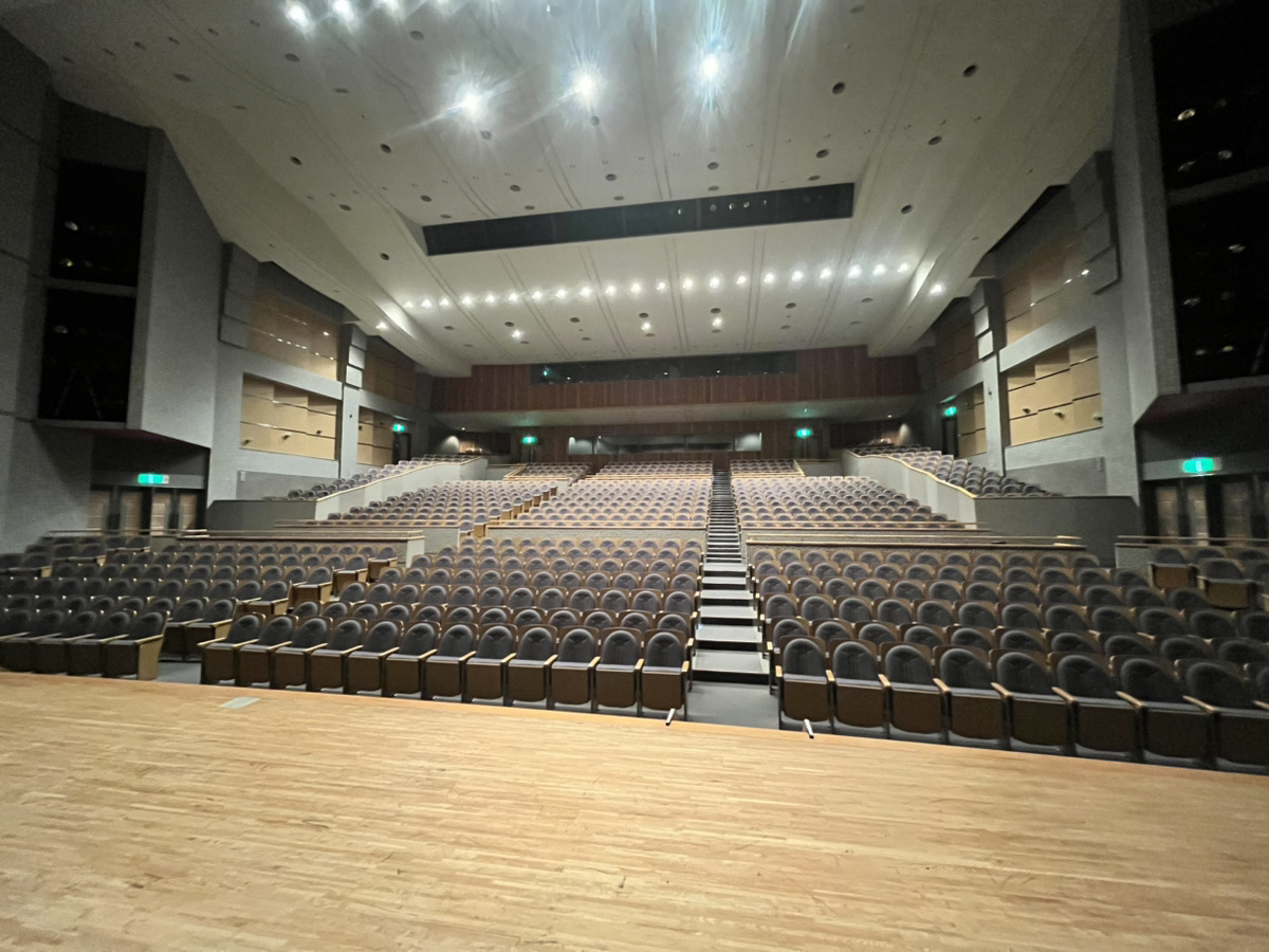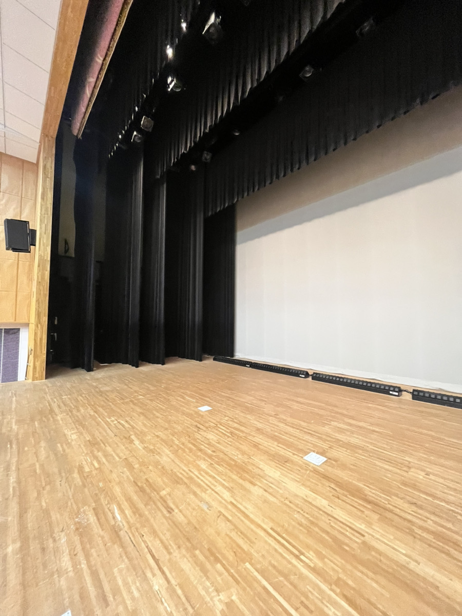 来月のライブペイントをする会場を下見をしてきました。神辺文化会館大ホールと西部市民センターホールです。