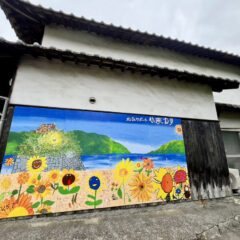 完成後、スプレー直後の乾燥時間内での撮影だったため、並べた状態での撮影でした。作品は、後日10月あたりに地域の公民館にて皆さんの作品が展示されるようです(*^^*)昨年も展示されたようでしたが、ご好評だったみたいで今年もとなったそうです。児童も描きながら楽しんで、地域の皆さんが見る楽しさに繋がるということは最幸なことだと思っています。とても、やりがいがあります。尾道市立因島南小学校の皆様、ありがとうございました。